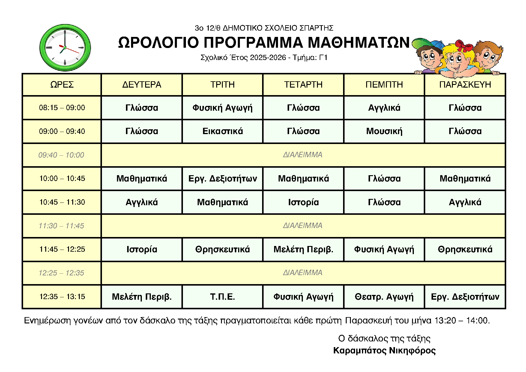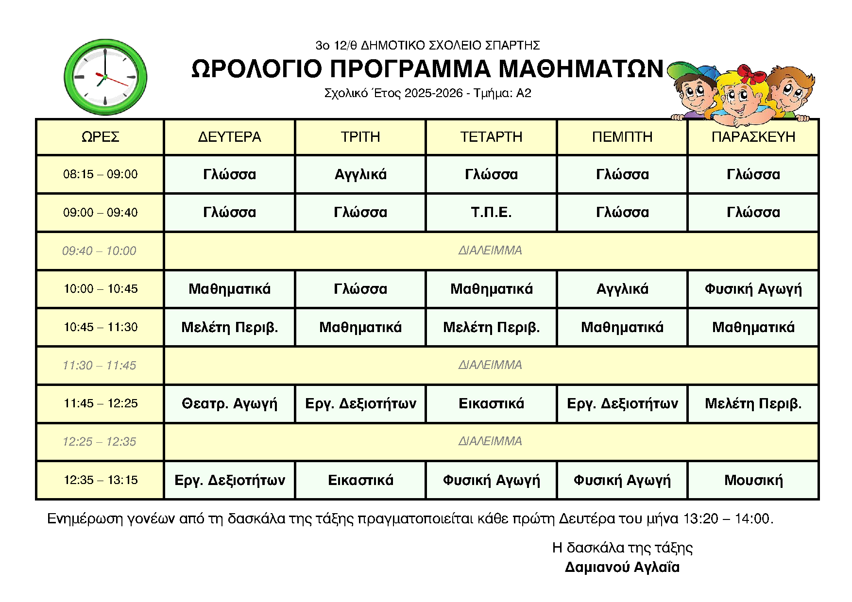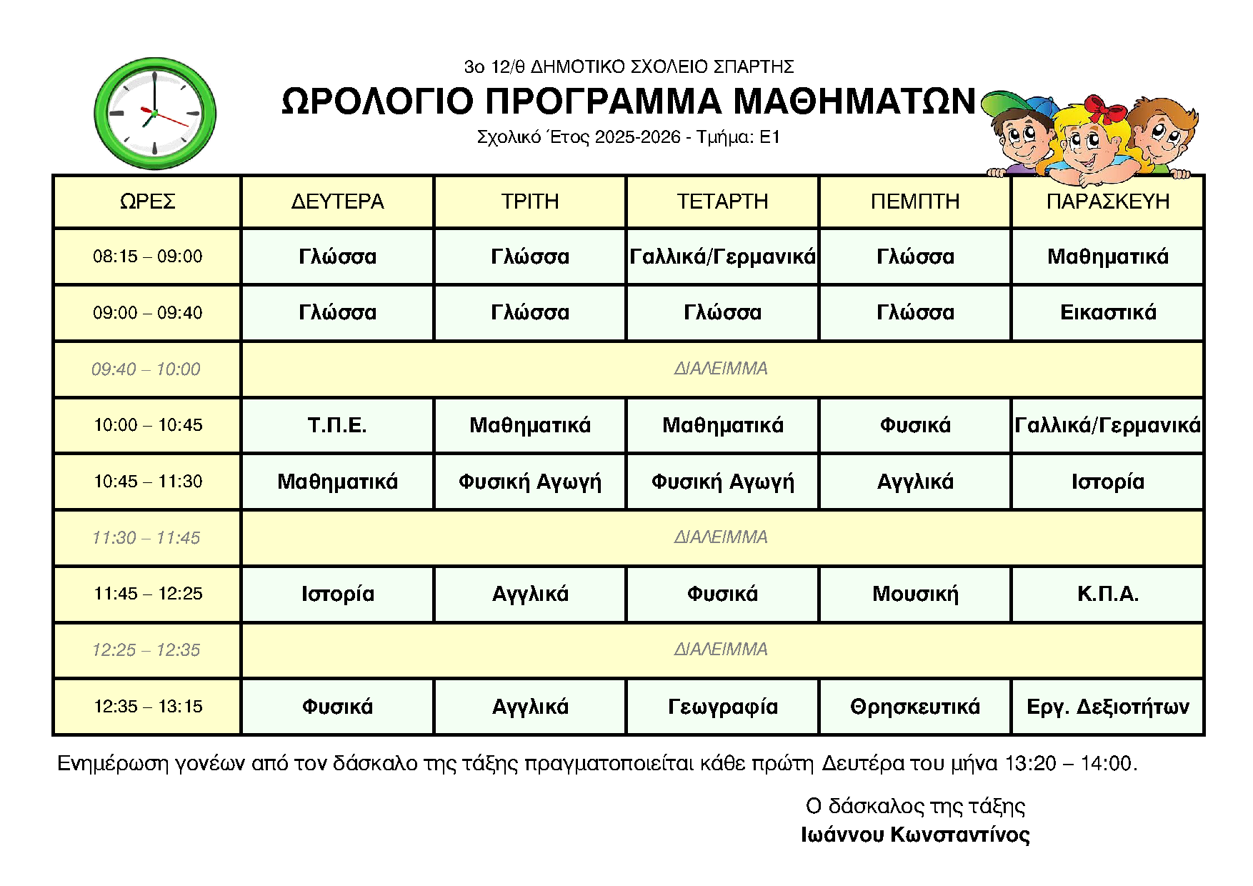 ΩΡΟΛΟΓΙΟ ΠΡΟΓΡΑΜΜΑ ΑΝΑ ΤΜΗΜΑ