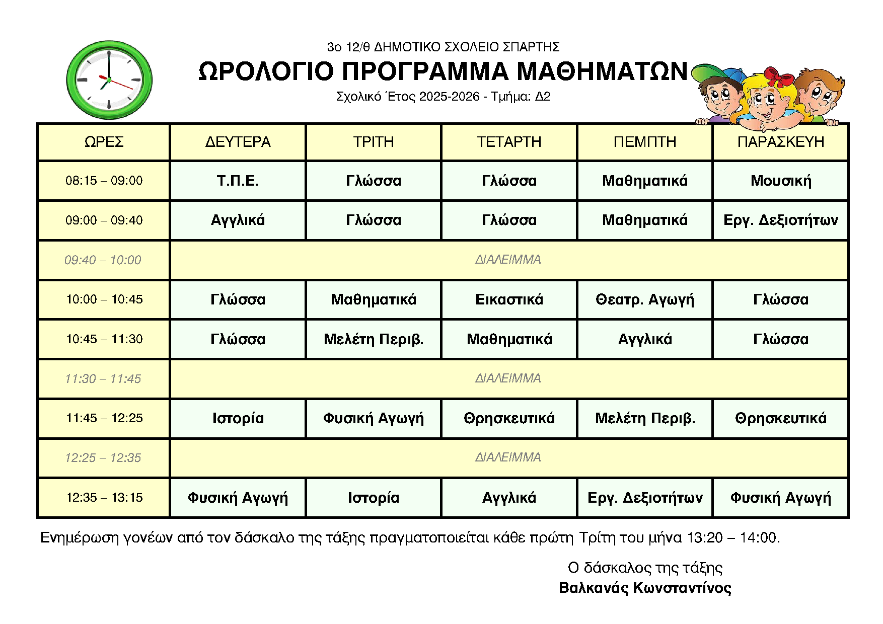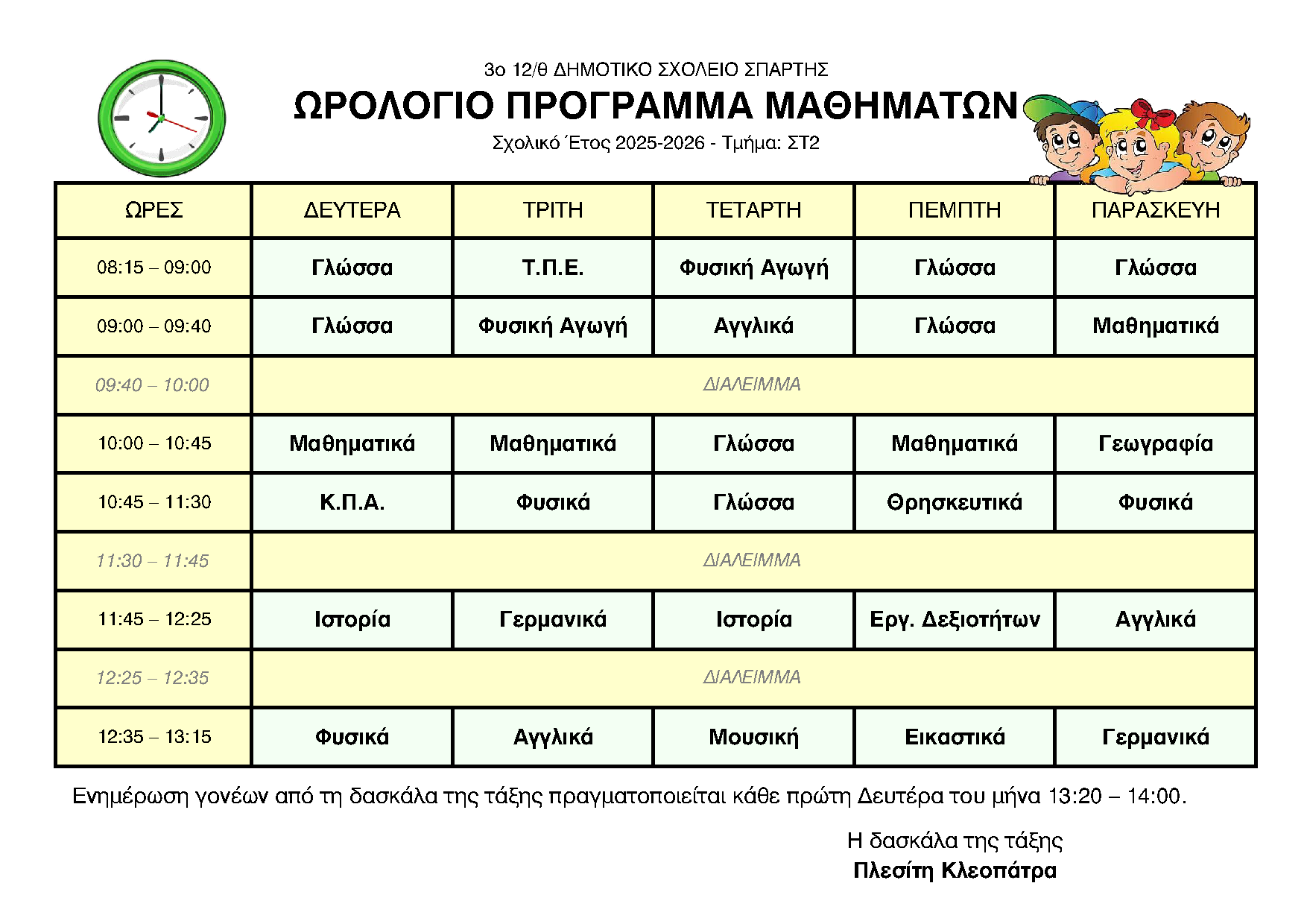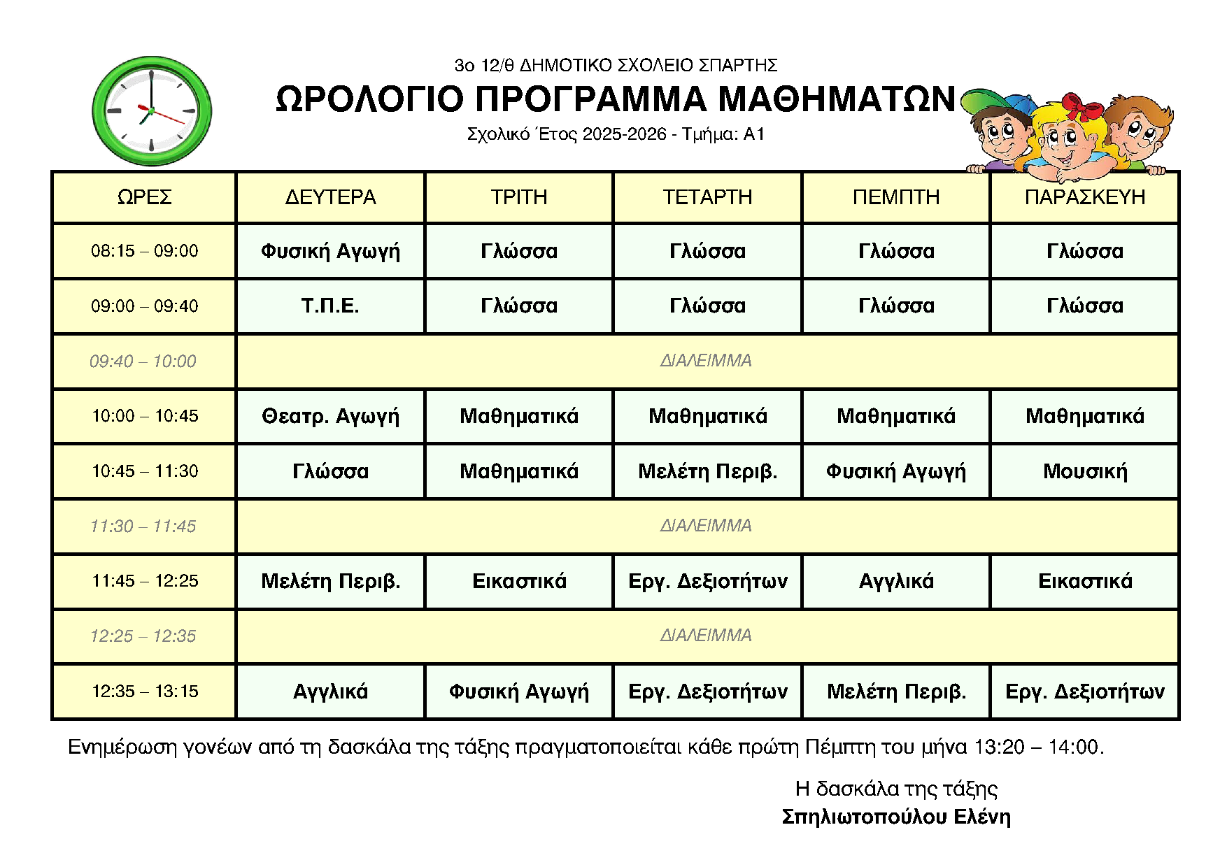 ΩΡΟΛΟΓΙΟ ΠΡΟΓΡΑΜΜΑ ΑΝΑ ΤΜΗΜΑ